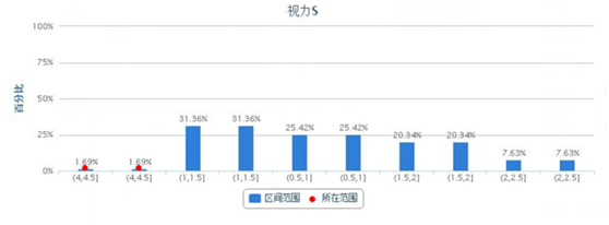 解析:S球径值在(1,2]范围内属于正常,而被测儿童眼睛S球径值处于一个疑似异常的范围,目前大概有1.69%的儿童处于该范围内。